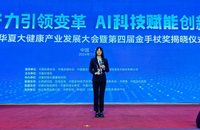 11月22日,由华夏时报社主办的2024年度华夏大健康产业发展大会暨第四届金手杖奖颁奖仪式在京举行。本次大会以“新质生产力引领变革.AI科技赋能创新发展”为主题,云集主管单位领导、行业资深专家学者、医药医疗大健康企业高管、投资机构等各方来宾,旨在探讨大健康产业在科技创新和政策支持下的发展方向和前沿趋势。